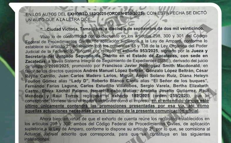 Y de hecho, la orden de amparo llegó a Tamaulipas dirigida a: